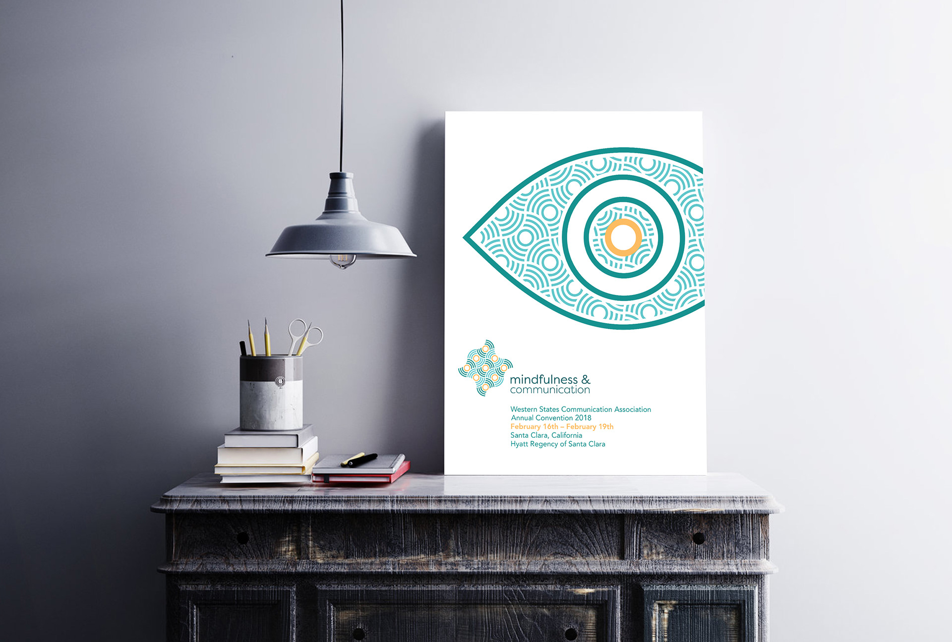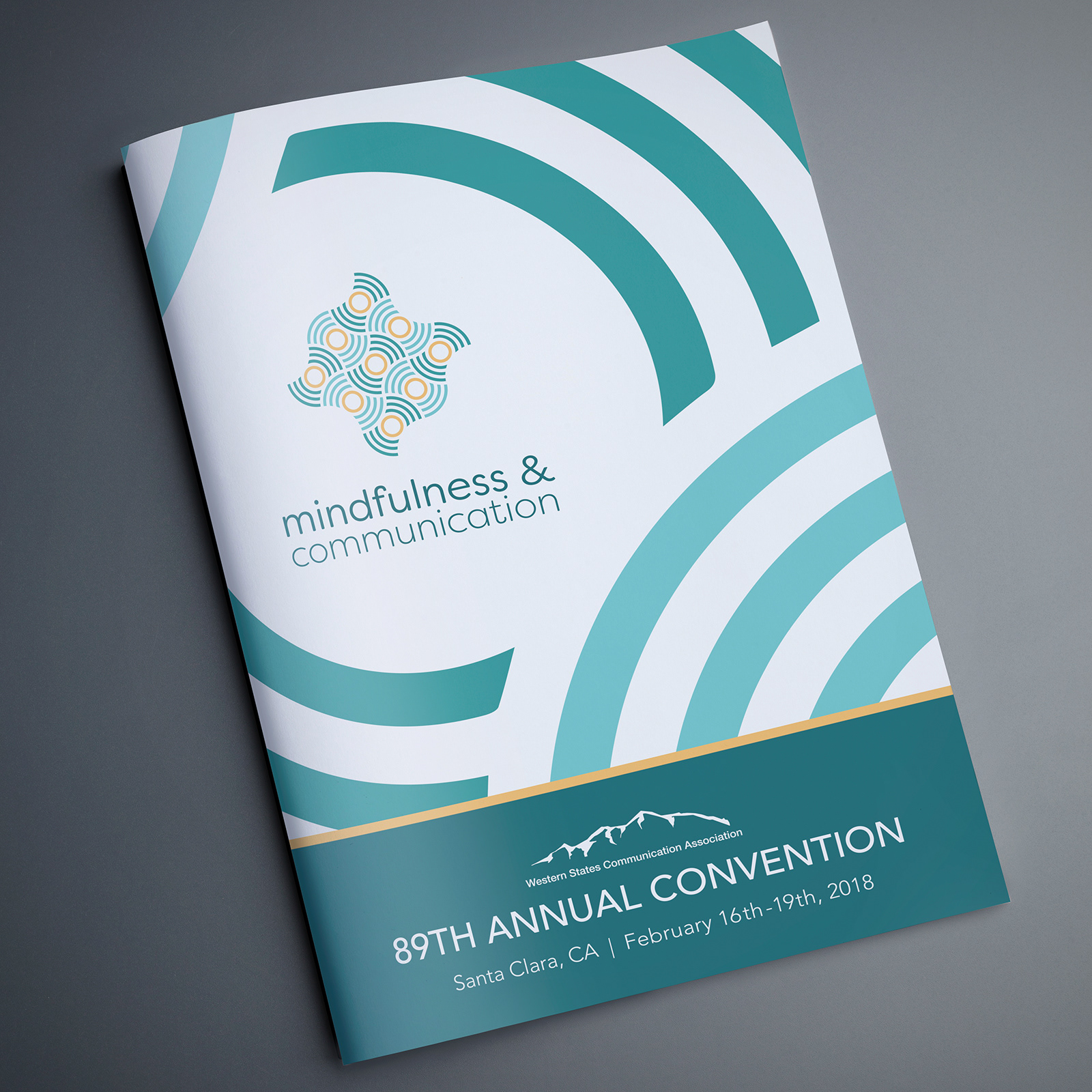 Project for the Western States Communication Association's 2018 convention. Using the name and theme Mindfulness & Communication, the WSCA requested a unified branding campaign that could be executed across multiple platforms for the convention. Through a student proposal and presentation competition, this project was chosen by the WSCA to be used for the convention.